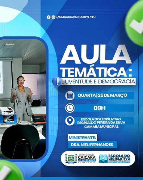 A Câmara Municipal de Caiçara do Rio do Vento, através da Escola Municipal do Legislativo “Reginaldo Pereira da Silva”, em ...